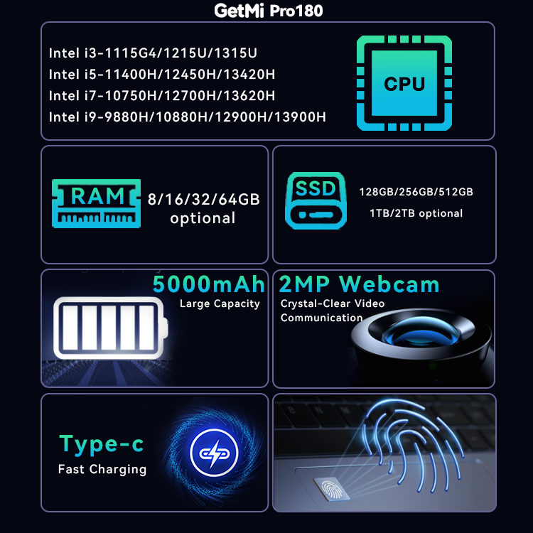 Intel i3-1115G4/1215U/1315UIntel i5-11400H/12450H/13420H Intel i7-10750H/12700H/13620H Intel i9-9880H/10880H/12900H/13900H |
